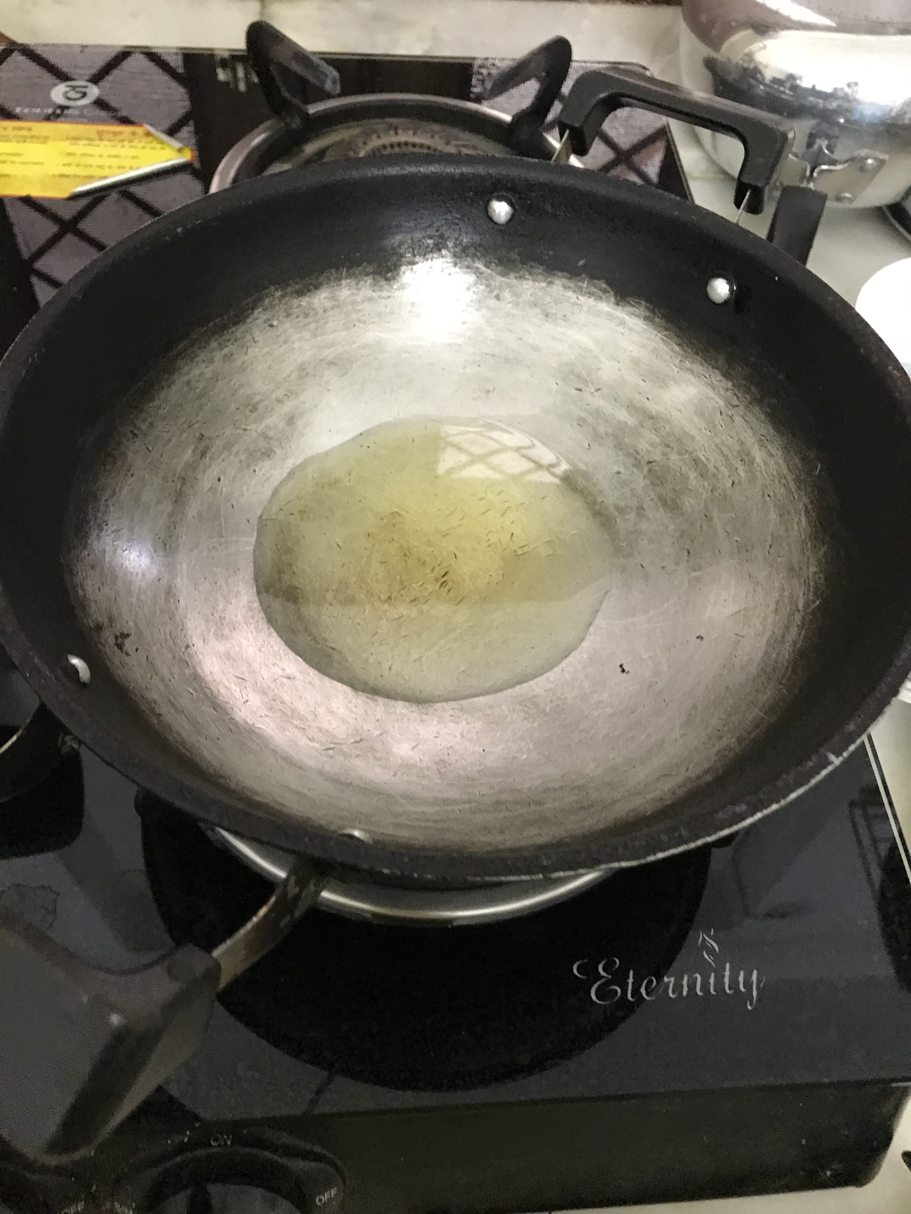 - For tempering: put oil in the Kadhai and once the oil is hot, add mustard seeds and bay leaf