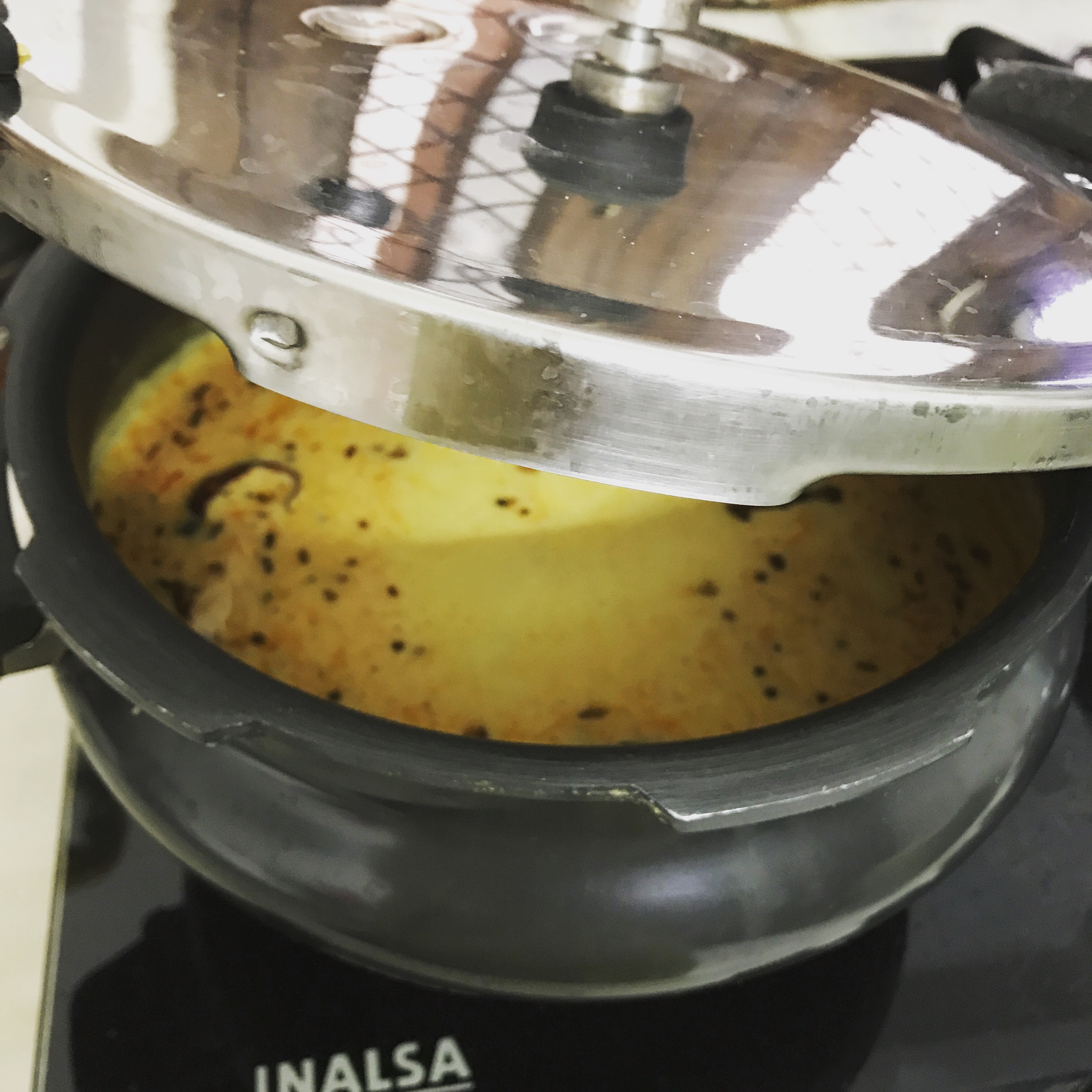 - Immediately transfer tempering to kadhi and cover it while on low heat for 5-6 minutes to bring more flavour.