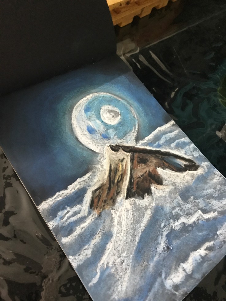 The following artwork “Seascape in soft pastels” is done on Bianyo Black Paper.