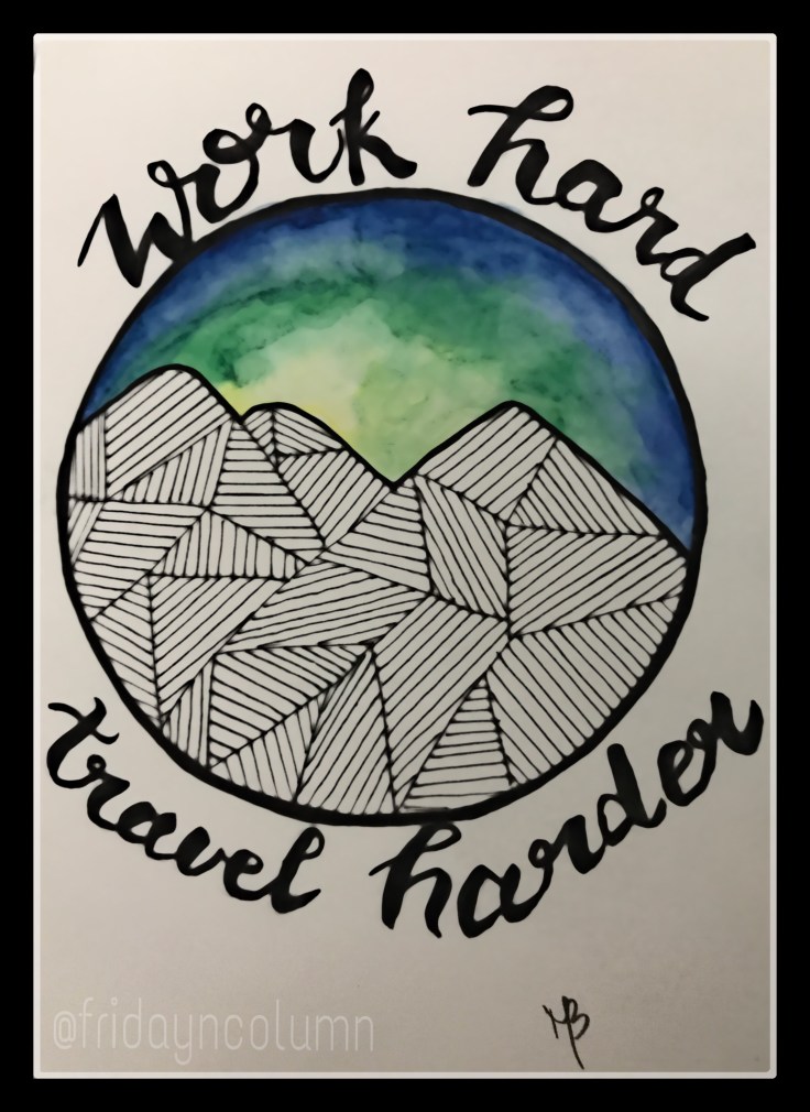 Weekend Wanderlust Life motto of our generation! Artwork done with Sakura manga comic kit , Fineart watercolour round tip brush and Camlin Watercolours. Liked the blog ? Do share it : Click to share on Facebook (Opens in new window) Facebook Click to share on X (Opens in new window) X Click to share on Pinterest (Opens in new window) Pinterest Click to share on WhatsApp (Opens in new window) WhatsApp Click to email a link to a friend (Opens in new window) Email Click to print (Opens in new window) Print Like Loading... Related Leave a comment Cancel reply Δ