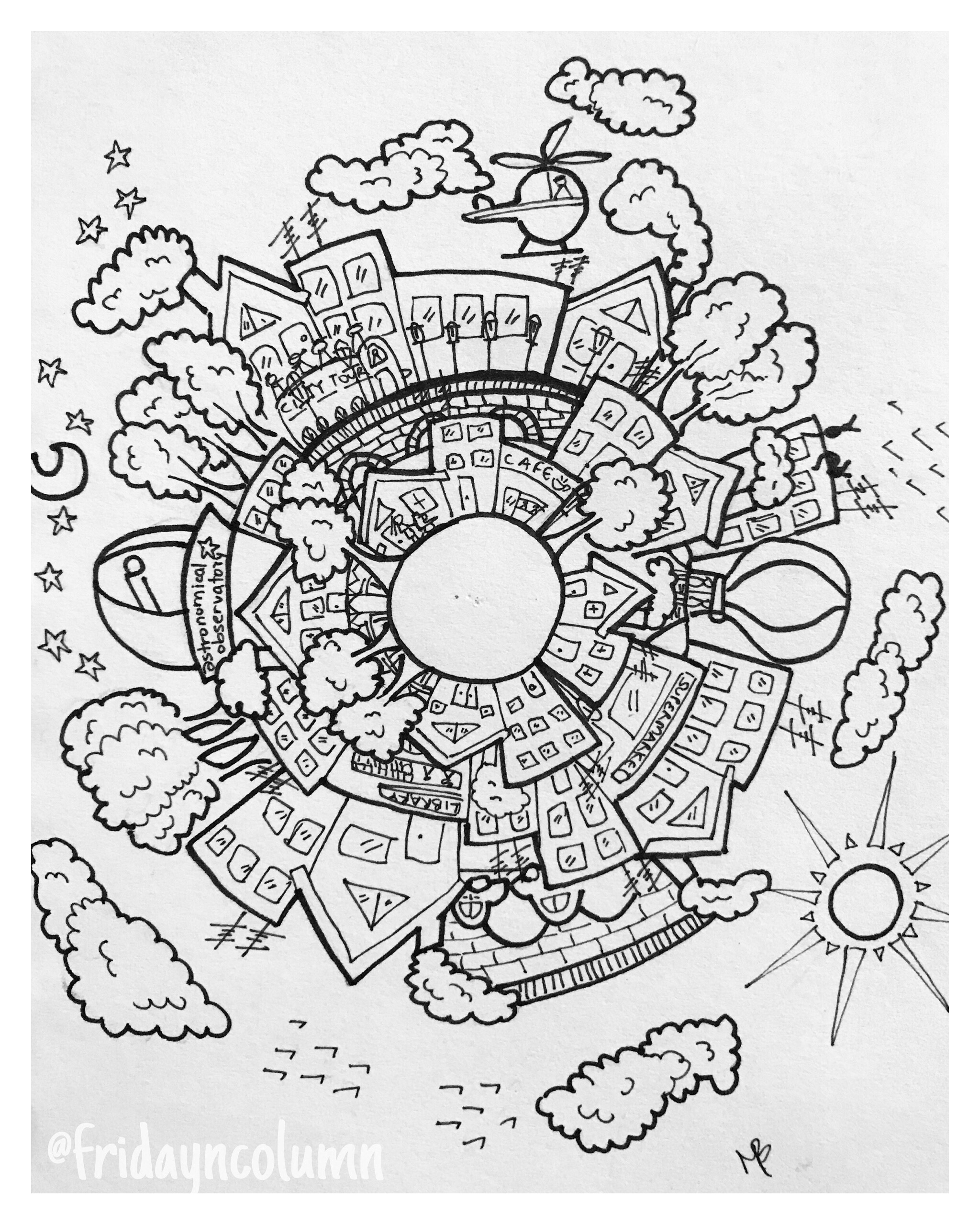 Mandala art is considered very relaxing , but depicting the city chaos through mandala art is the most striking part of this artwork.