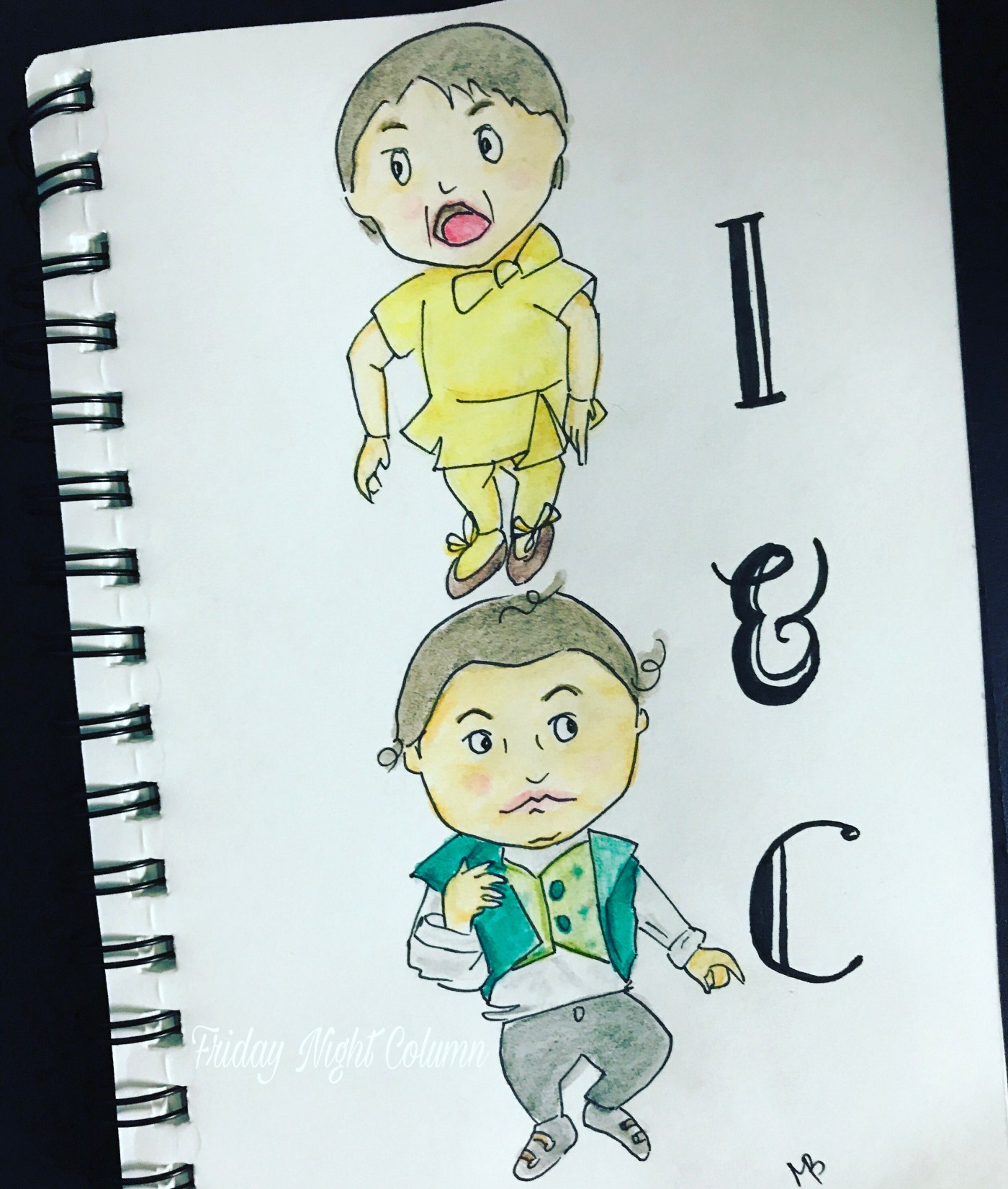 The following artwork is the caricature of my twins C&I . This is from a picture I took on their half birthday and they both seem to be in their own zone 😂