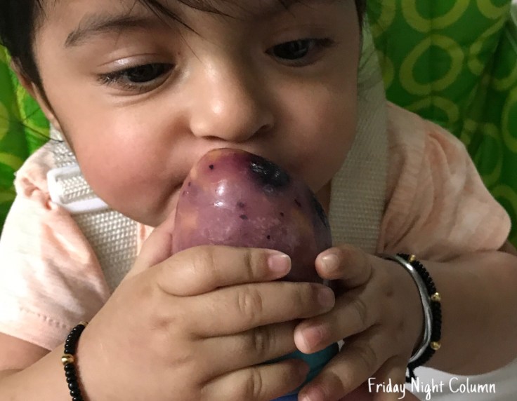 Ice pops are a great way to soothe gum pain and irritation in teething children . So as soon as I got hold of fresh blueberries from my local fruit vendor , I made sure my 8 month old twins enjoy this delicious fruit along with us.