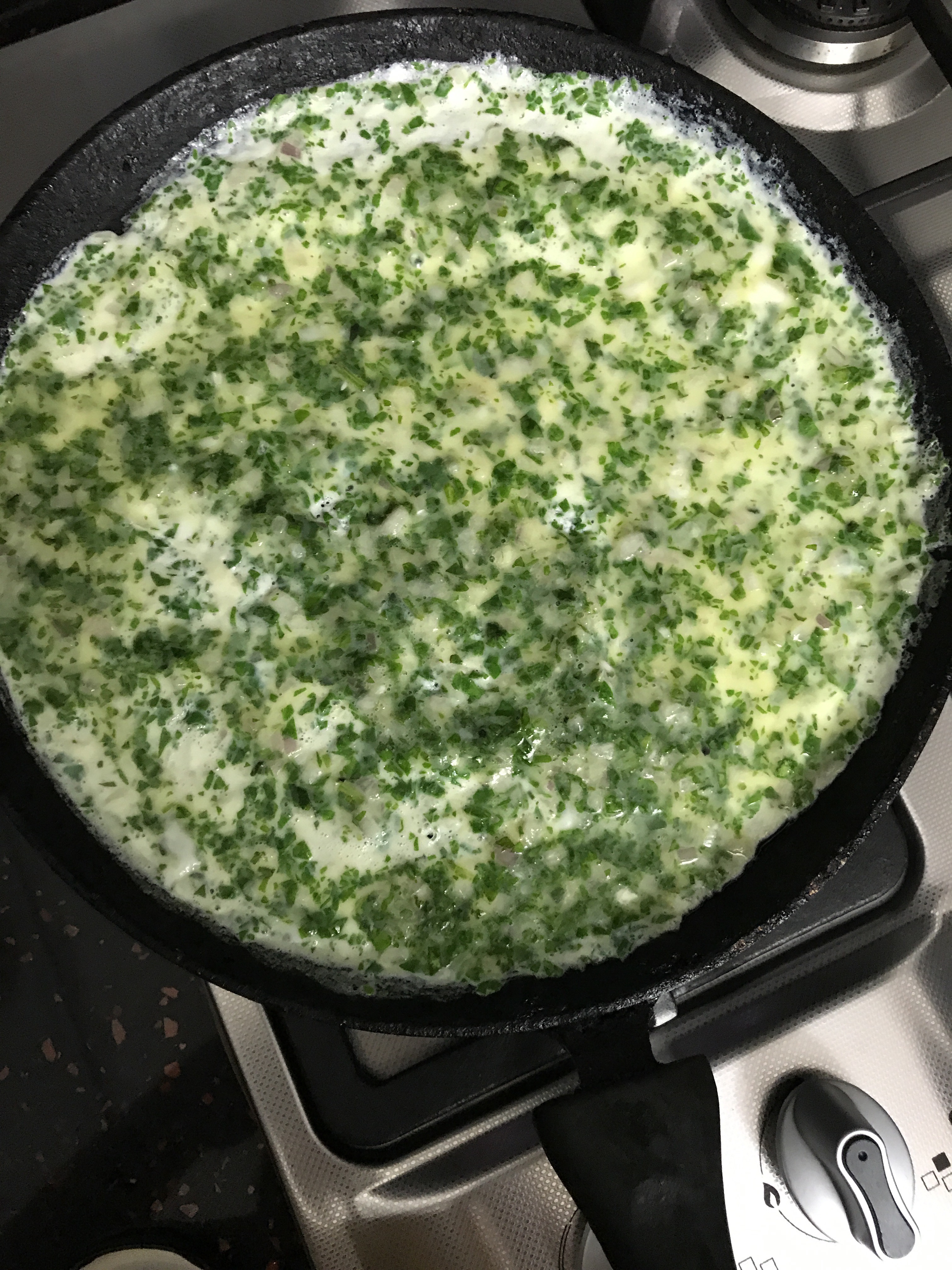 Banana French Toast : Click Here for Recipe ! - Spinach Omelette : Finely chop washed spinach (1tbsp)and squeeze excess water out of it.Finely chop onion (1tbsp) and keep 1 tbsp for use .Whisk an (one) egg. Add salt to taste .Add chopped onion and spinach to whisked egg.Heat an omelette pan. Add 1 tbsp ghee .Pour the egg mix and spread to make an even circle. Cook for 2-3 minutes till set .Flip and cook the other side for 2 more minutes . Serve warm .