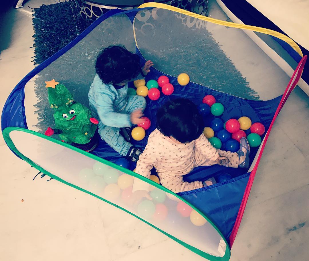 An indoor ball pool or a ball pit is an excellent activity for toddlers. Though it is not an enclosure but kids love to play with balls and roll around in it. It is also a fun game to play when cousins come over. With twins, I find this a good option which keeps both kids busy.I have bought one from Hamleys India.